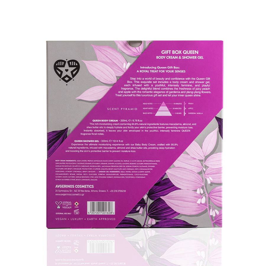 Ανακάλυψε το απόλυτο δώρο για κάθε γυναίκα που θέλει να νιώθει βασίλισσα — κάθε μέρα. Το Queen Gift Box περιλαμβάνει το εμβληματικό αφρόλουτρο και την πλούσια κρέμα σώματος της σειράς Queen, με ένα άρωμα που συνδυάζει φρεσκάδα, αισθησιασμό και παιχνιδιάρικη θηλυκότητα.