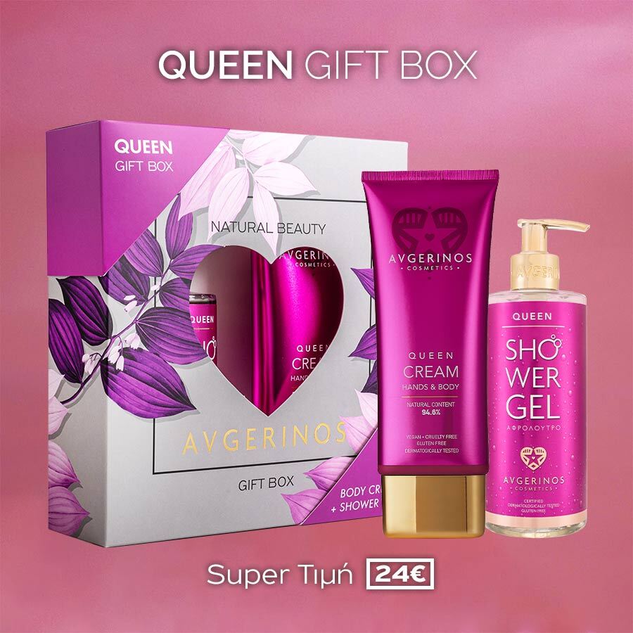 Δύο εμβληματικά προϊόντα Queen σε κομψό gift box, μόνο 24€. Φροντίδα με άρωμα θηλυκότητας και διακριτικής πολυτέλειας.